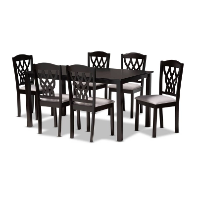 7pc Salem Fabric Upholstered And Wood Dining Set – Baxton Studio