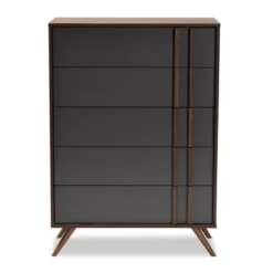 5 Drawer Naoki Wood Bedroom Chest Gray/Walnut – Baxton Studio