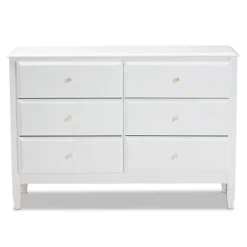 6 Drawer Naomi Wood Bedroom Dresser White/Gold – Baxton Studio