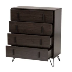 Baldor Wood Metal 4 Drawer Bedroom Chest Dark Brown – Baxton Studio