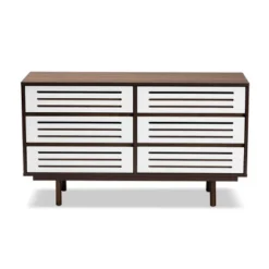 6 Drawer Wood Dresser And Meike Two-Tone Walnut/White – Baxton Studio