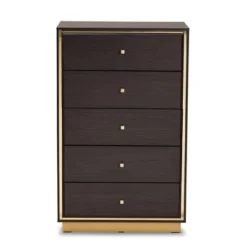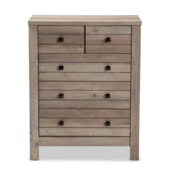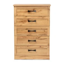 Colburn Wood 5 Drawer Tallboy Storage Chest Oak Brown – Baxton Studio