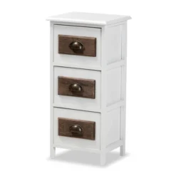 Fanning Two-Tone Wood 3 Drawer Storage Unit White/Brown – Baxton Studio