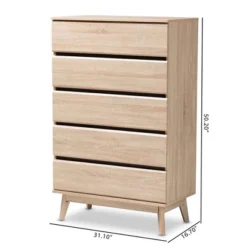 Mirren Light Oak 5 Drawer Chest Brown/Dark Gray – Baxton Studio