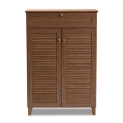 Shelf Wood Shoe Storage Cabinet With Drawer Coolidge Brown – Baxton Studio