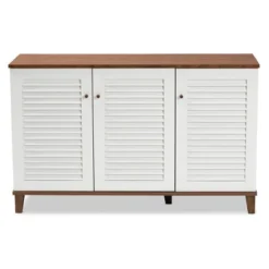 Coolidge 4 Shelf Wood Shoe Cabinet White/Walnut – Baxton Studio