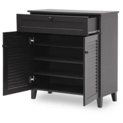 Cayla Modern And Contemporary Wood Shoe Cabinet – Black – Baxton Studio
