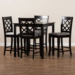 5pc Alora Fabric Upholstered Wood Pub Counter Height Dining Set Gray/Brown – Baxton Studio