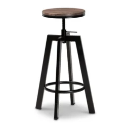 3pc Metal And Maritta Wood Height Adjustable Bar Pub Dining Set Walnut/Black – Baxton Studio