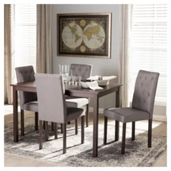 5pc Katya Fabric Upholstered And Wood Dining Set Gray/Brown – Baxton Studio