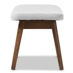 Vera Mid – Century Modern Fabric Upholstered Ottoman – Light Gray, “Walnut” Brown – Baxton Studio