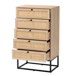 Amelia Wood Rattan 5 Drawer Storage Cabinet Natural Brown/Black – Baxton Studio