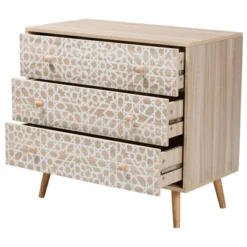 Beau Two-Tone Wood 3 Drawer Storage Cabinet White/Natural Brown – Baxton Studio