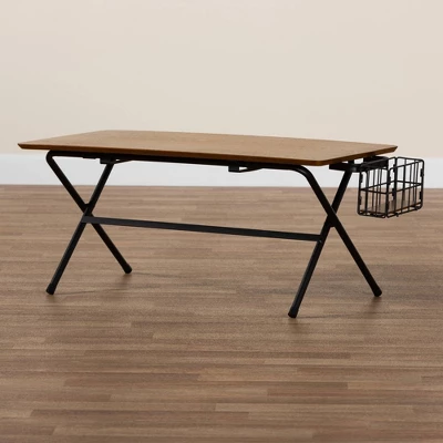 A stunning modernization of classic artistry, the Mariela coffee table serves as a delightful centerpiece. Made in China, this handy piece consists of a solid metal frame fitted with a wood tabletop. The side of the table is affixed with a basket to easily display books, controllers, and other living room essentials. The Mariela requires assembly and features crisscross legs for excellent stability and support in striking design. A handy addition with rich character, the Mariela coffee table supplements any arrangement. Overall Dimensions: 40.38″ W x 17.75″ D x 15.88″ H; Table Top: 35.40″ W x 17.70″ D x 0.60″ H; Basket: 8.90″ W x 2.10″ D x 11.80″ H; Clearance: 15.00″ H;