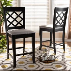 Set Of 2 Caron Fabric Upholstered Wood Counter Height Pub Chair Set Gray/Walnut – Baxton Studio