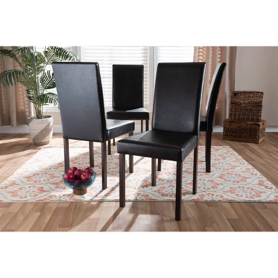 The essence of “streamlined,” our Andrew Dining Chair provides a completely contemporary take on the dining Chair. Our Andrew Chair combines well with many dining tables or can be enjoyed independently. Absent arms, this dining Chair provides style and utility. wooden frame and faux leather seat unite in an item few would guess carries a discount price tag. 17.25″W X 21.625″D X 36.625″H, Seat dimension: 17.25″W x 16.5″D x 18″H