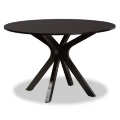 7pc Minette Fabric Upholstered Espresso Wood Dining Set Sand/Dark Brown – Baxton Studio
