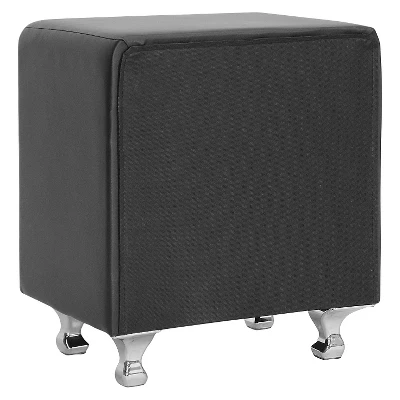 Stella is a glamorous designer nightstand that takes it up a notch with allover faux crystal button tufting. Crystal lookalike buttons adorn the front of the bedside table’s two drawers and truly glimmer with even the slightest bit of light. faux leather is accented by chrome-plated metal legs. This Malaysian-made modern nightstand is built with a plywood and hardwood frame, which is padded with foam before being upholstered. The designer nightstand, which requires minor assembly, is also available in and (sold separately). Keep an eye out for the matching bed, floor mirror, and bed-end bench (also sold separately). Dimensions: 23.75″ High x 21.00″ Wide x 15.50″ Long; Drawers(Upper and Lower): 5.75″ High x 14.50″ Wide x 12.75″ Long