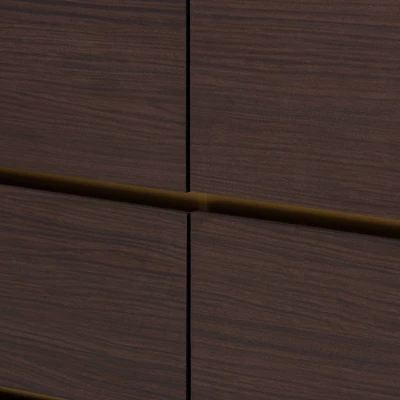 The sleek, modern flair of the Walker dresser organizes your space in stunning style. Made in Malaysia, the Walker radiates rich wood tones with its dark brown finished frame. Six spacious drawers, outlined in a striking gold-tone finish, help maintain busy rooms with ample storage space for clothes, linens, and more. Requiring assembly, the Walker features a faux marble top for a luxurious accent steeped in modern glamour. With its radiant design and flexible convenience, the Walker dresser is a superb addition to any space. Dimensions: 31.50″ High x 48.00 ” Wide x 15.75″ Deep; Drawer Dimensions: 3.60″ High x 21.00″ Wide x 12.10″ Deep;